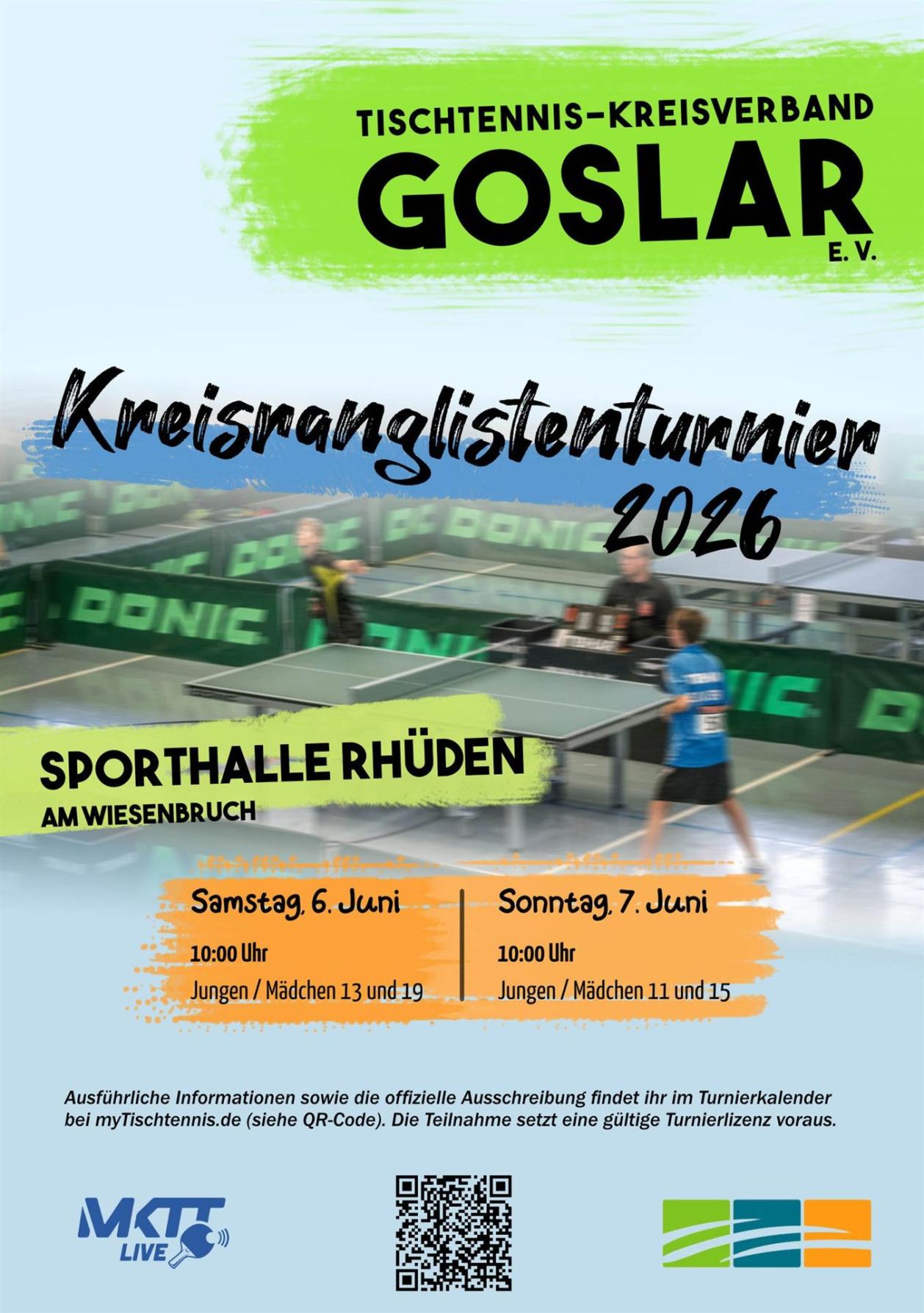 09:00 Tischtennis: Kreisranglistenturnier Nachwuchs in Rhüden