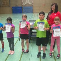 In der für die Anfänger veranstalteten Spielegruppe, bei der es auch um Bewegung und Koordination ging, erreichte Finnjas Windten die meisten Punkte und konnte damit bei der Siegerehrung seine erste Goldmedaille in Empfang nehmen. In der Schülerinnenklasse holte sich Nejla Cosovic ihren ersten Titel als Vereinsmeisterin und bei den Schülern war wiederum Linus Mehlau, der mit seiner Schnelligkeit und Technik überzeugte, erfolgreich. In der ältesten Kategorie, der 14- bis 18-Jährigen, zeigte Malte Trapp, der auch schon in der Herrenmannschaft eingesetzt wird, eine herausragende Performance und holte sich den Sieg.