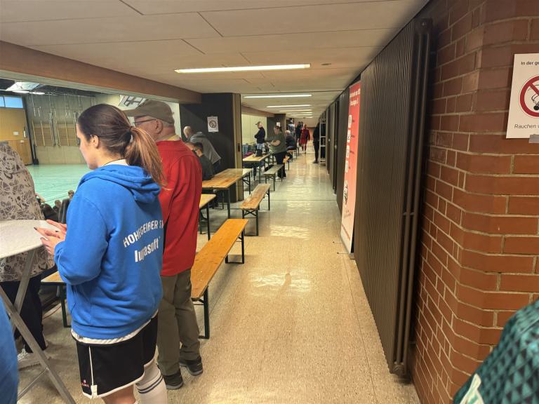 Im Laufe des Tages kamen dann mehrere Hundert Besucher in die Sporthalle und wollten bei dem noch immer attraktiven Event dabei sein. Wie der SVB-Vorsitzende betonte sollte es bei diesem Wettbewerb insbesondere um den Spaß gehen, den dann auch alle Mannschaften in ihren Spielen sichtlich hatten. Aber auch das Miteinander im Ort sollte, gerade nach der langen Pandemiezeit, wieder gefördert werden. Dieses Konzept ging voll auf und viele Braunlager kamen nicht nur wegen des Sports in die Halle sondern auch, um sich mit alten Bekannten und Freunden zu treffen. Auch Ortsvorsteher Albert Baumann ließ es sich nicht nehmen dabei zu sein und verfolgte einige Gruppenspiele.